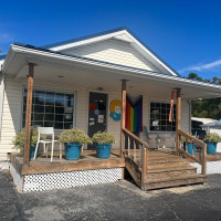 “ Staff and owners here are incredible people. Drinks and snacks are amazing! Space is small but so homey, and they have a cute porch for covered outside seating and an open outdoor seating area in the back. The food trucks here are always the BEST! Yesterday is was Season It Up and it was the best crab cake (vegan) I've ever had!!! AND THERE'S CATS! ”